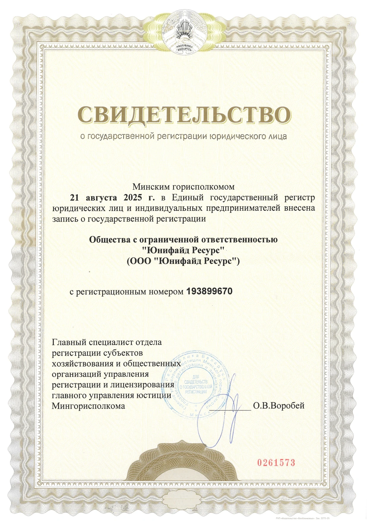 Согласно решению Министерства труда и социальной защиты №661 от 16.09.2025 г. ООО “Юнифайд ресурс” включено в государственный Реестр агентств по трудоустройству